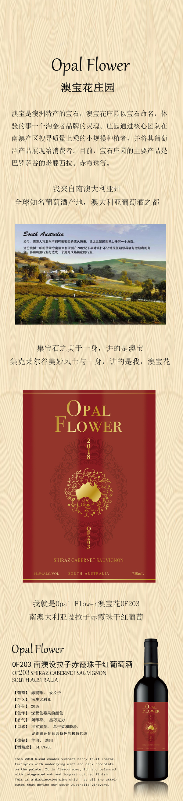 澳寶花OF203設拉子赤霞珠干紅葡萄酒