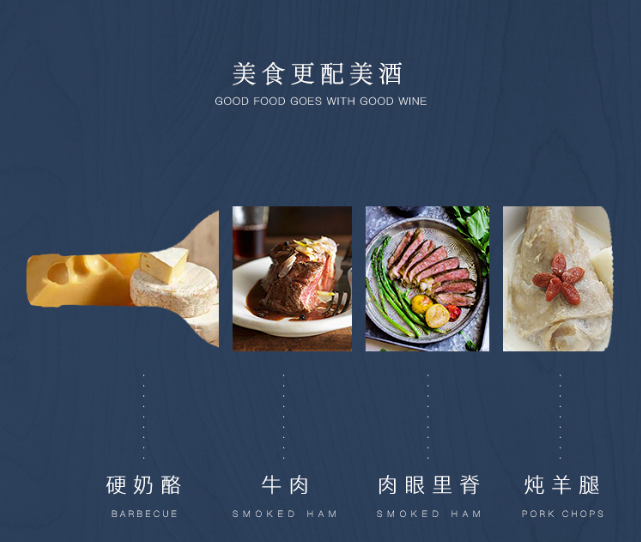 食物搭配 : 此酒與紅肉是完美的組合,也可以搭配其他燒烤類食物