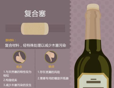 為了保留天然塞的優(yōu)點,同時減少軟木塞污染的發(fā)生,人們制作出另外一種酒塞——復(fù)合塞。這種酒塞本身也十分結(jié)實,其優(yōu)點與天然塞相似,且發(fā)生軟木塞污染的概率小很多。但無可避免的是,使用這種酒塞依然存在泄漏的風(fēng)險。此外,它也需要專門的開瓶器。