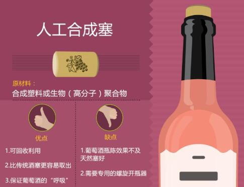 人工合成塞通常是采用合成塑料制品制成的。這種瓶塞是可回收利用的,在外形上和功能上與天然塞相似,都能保證葡萄酒的“呼吸”。一些著名的生產(chǎn)商,如諾馬科(Nomacorc)還推出了采用甘蔗聚合物制成的合成塞。而說到這種瓶塞的不足之處,除了依然需要專門的開瓶器,還有一點是,葡萄酒在瓶中陳年的效果不如天然塞好。