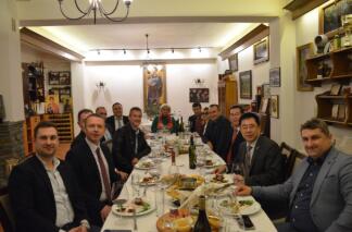 2022年11月21日,駐北馬其頓大使張佐應(yīng)馬其頓商會(huì)會(huì)長安杰洛斯基邀請(qǐng),赴寶韻酒莊考察。使館經(jīng)商參贊何丙華、馬其頓商會(huì)機(jī)械制造、信息技術(shù)、農(nóng)食品加工、物流運(yùn)輸?shù)刃袠I(yè)的十多位企業(yè)家代表參加了考察活動(dòng)。